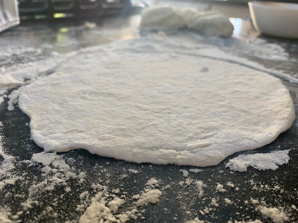 8. Set oven to 300℉ and prepare a large baking sheet (you will want to keep the flatbreads warm when you’re done frying them in a pan).