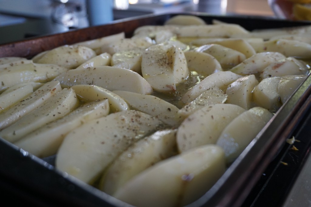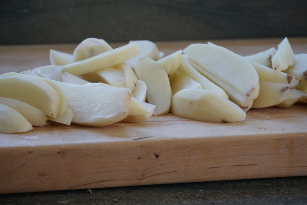 - 3 pounds large potatoes (about 6), peeled then cut into wedges (as pictured below)