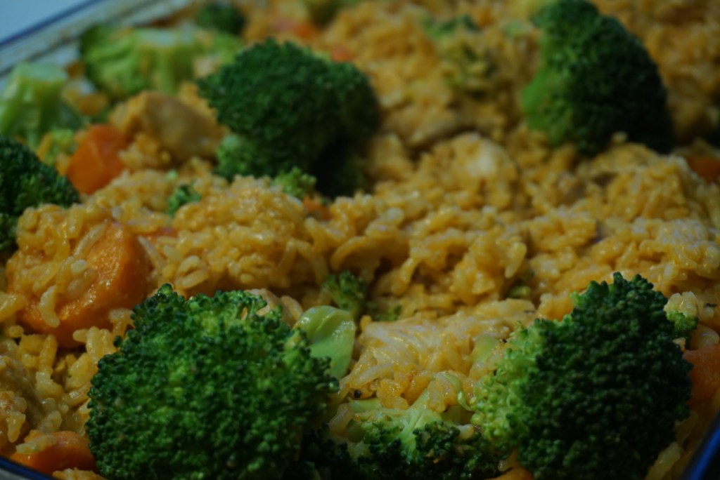Looking for another easy and tasty weeknight one-pan meal? Ali Sagle’s fluffy baked rice mixed with creamy and nutty coconut curry, and tender pieces of boneless chicken thighs, can be on the table in 50-60 minutes with very minimal prep. It is super fragrant and results in a hearty meal. The leftovers are just as delicious the next day. You can make this dish with tofu if you are keeping it veg.
