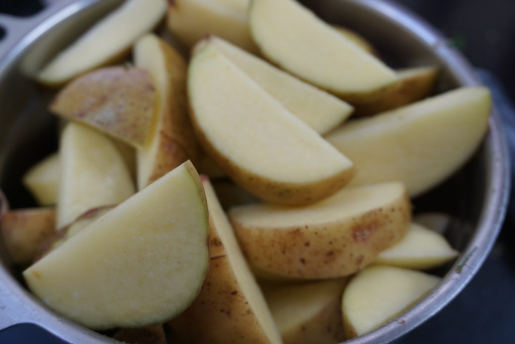- 2-3 pounds Yukon Gold potatoes, scrubbed, cut into small wedges