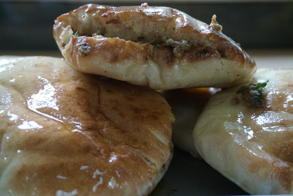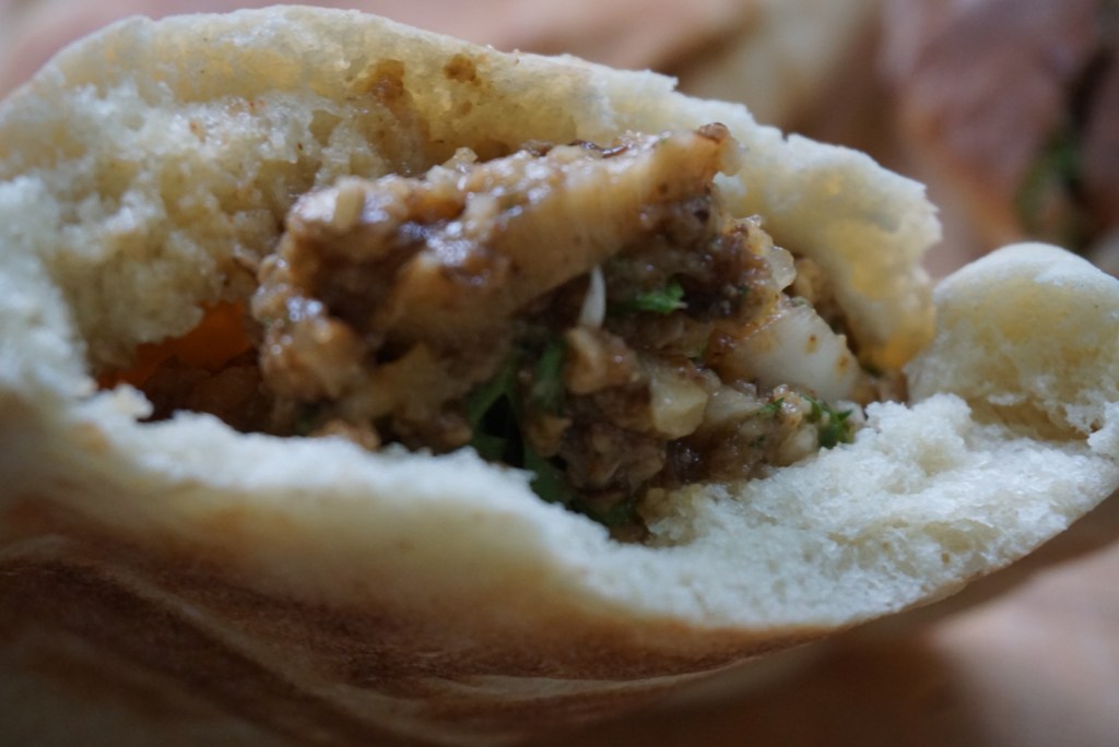 Arayes are typically prepared by stuffing raw spiced lamb or beef into pitas and then grilling them. Adeena Sussman’s vegetarian version, using mushrooms, onion, garlic, herbs, and seasoning creates a super flavorful and juicy stuffed pita. When paired with a lemony yogurt sauce, the texture and taste will make your mouth water.