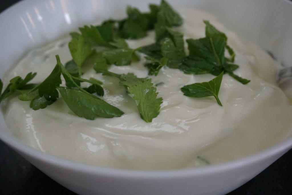- Prepare the yogurt sauce by whisking together the yogurt, lemon juice, olive oil, herbs, and salt. Keep chilled until ready to use.