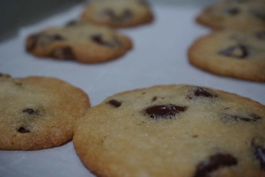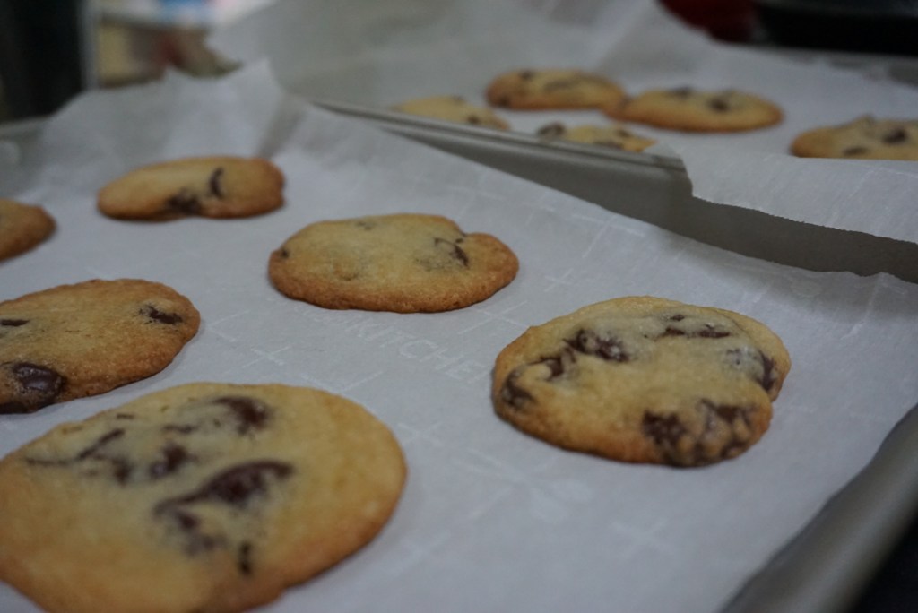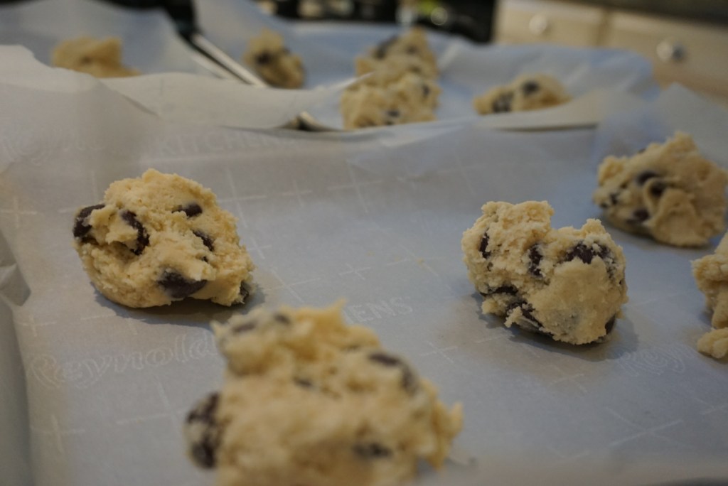 5. Once ready to bake, pre-heat oven to 350℉. Place oven rack in the center. Line the baking sheet with parchment paper. Spoon out the dough into balls about 2 inches apart. Bake for approximately 15 minutes, or until the cookies are golden brown along the edges and slightly soft in the center.
