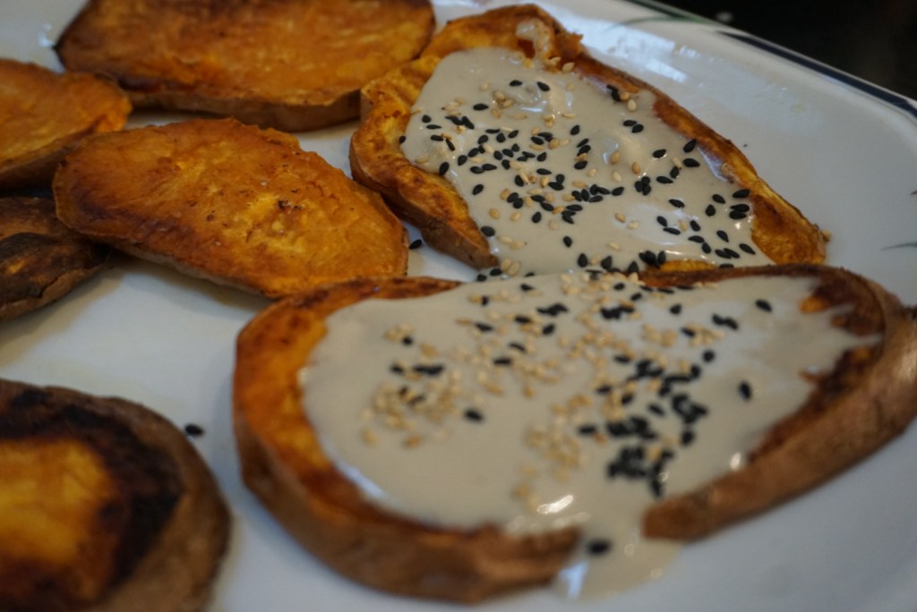 Grilled or roasted, sweet potatoes are always delicious. Drizzle them with a tahini sauce and sesame seeds and they will be a star meal or a perfect side. Below are the details you need to get this super quick sweet potato toast and tahini lunch, dinner or side on the table.