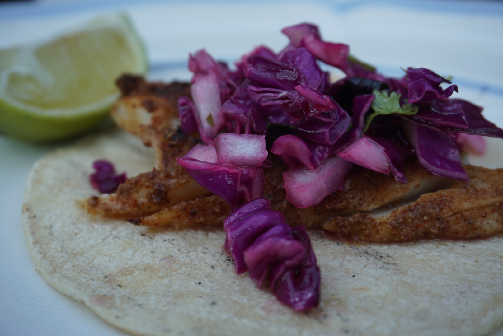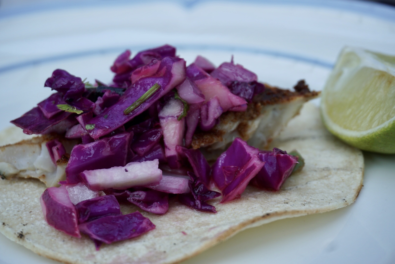 Light, healthy, and quick, these grilled fish tacos are a simple and fresh meal you can have on the table in 30 minutes. A well-seasoned piece of grilled fish (any white variety such as cod or halibut in New England, grouper in the southeast, mahi mahi in the west) pairs perfectly with a colorful, zesty, and crunchy cabbage slaw in a warm flour or corn tortilla. Top with a slice of avocado, a pinch of lime, and a sprinkle of cilantro and you have yourself a perfect summer dinner.