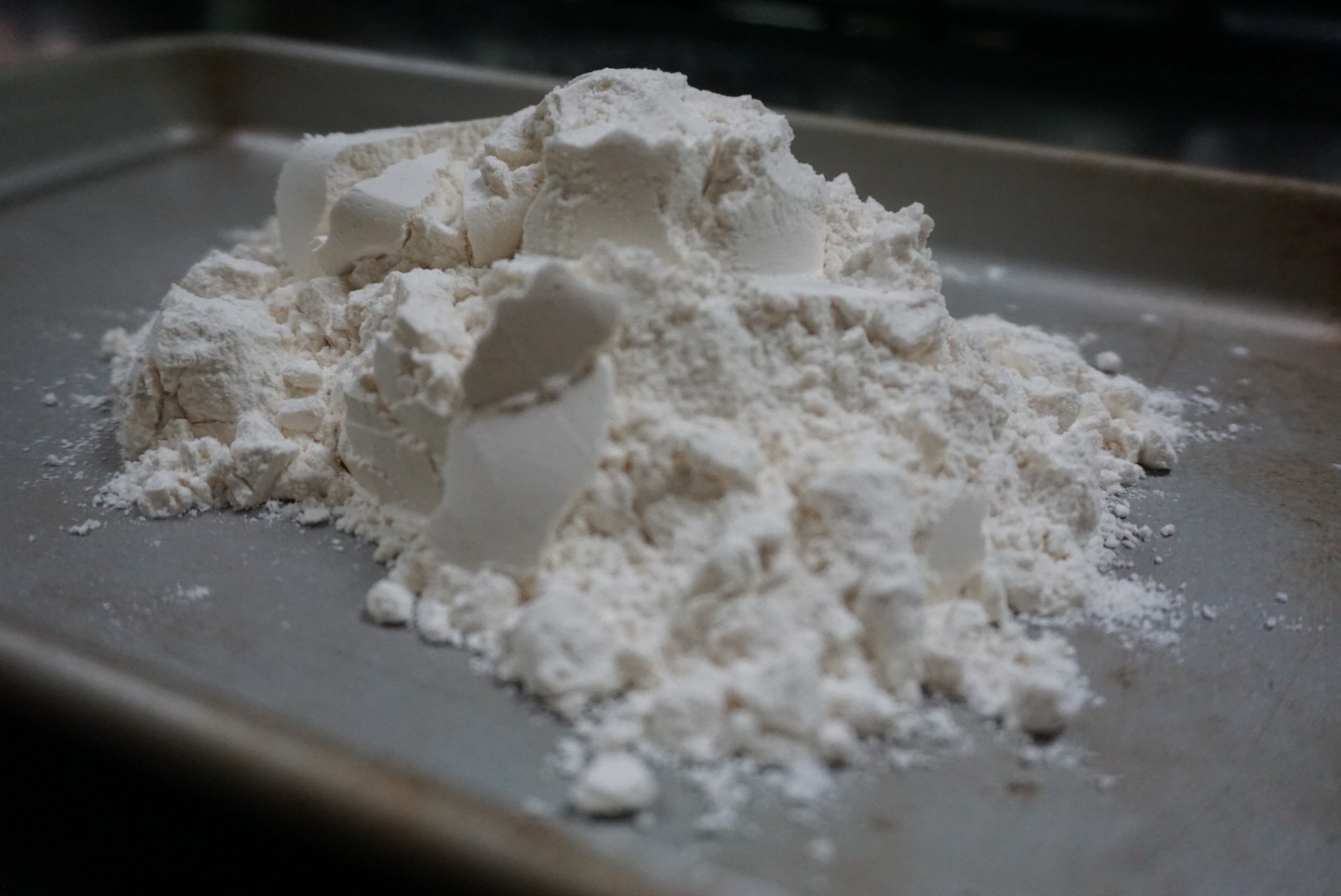 1. Bake the flour at 350 F for 5 minutes and then sift it to break up any clumps.