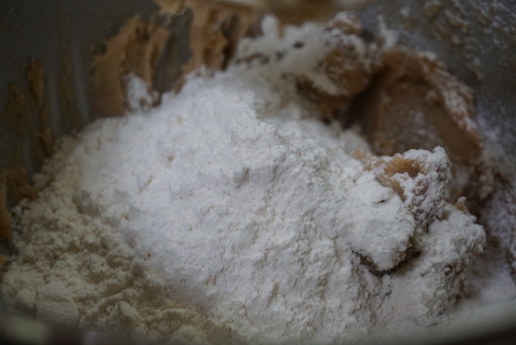 2. Cream together the butter, and the sugars in a stand mixer with paddle attachment until light and fluffy (about 1-2 minutes).