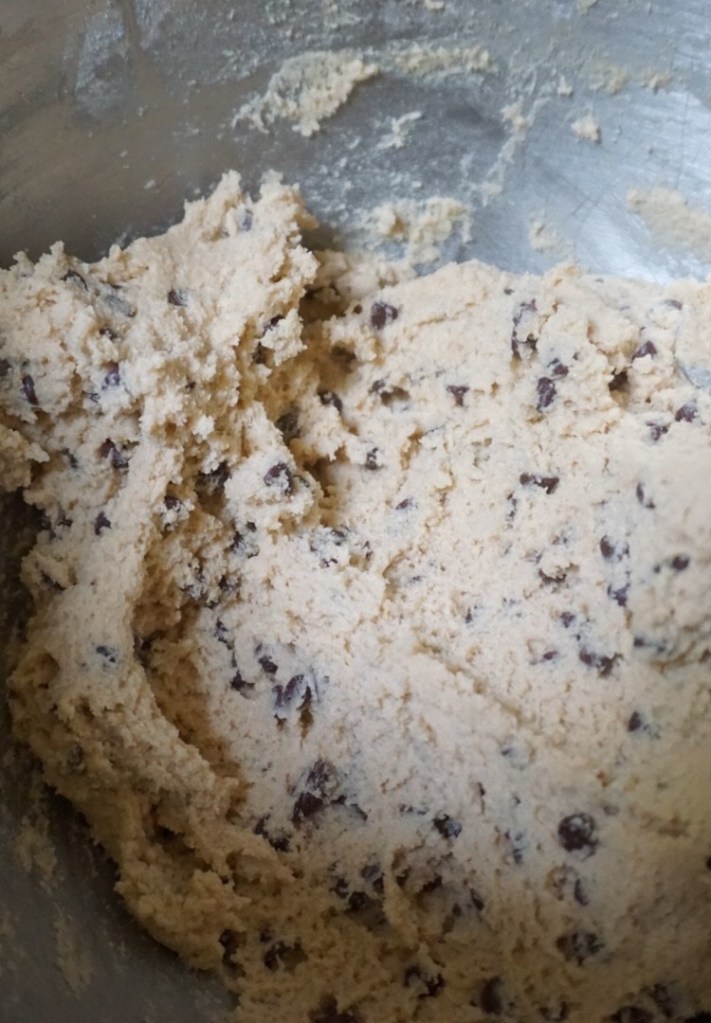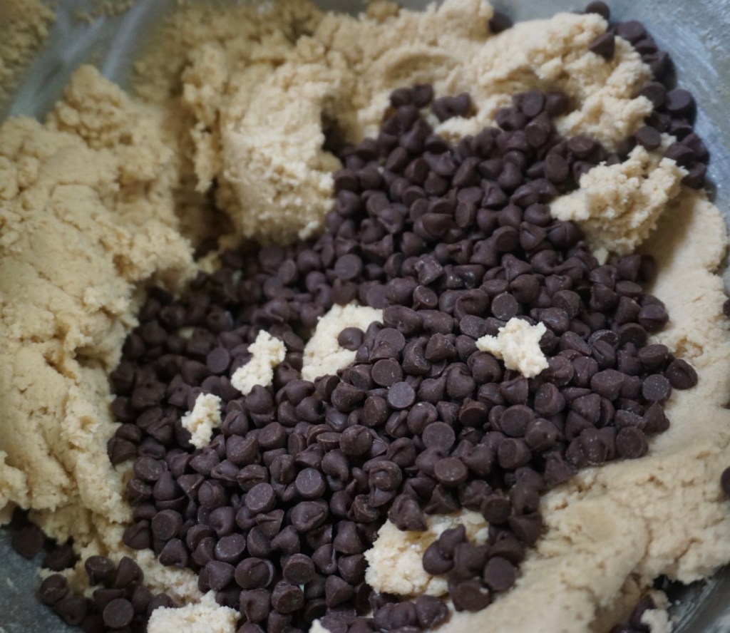 5. Mix in the chocolate chips, cover the mixture and refrigerate for 30 minutes to make the dough easier to work with in the next steps.