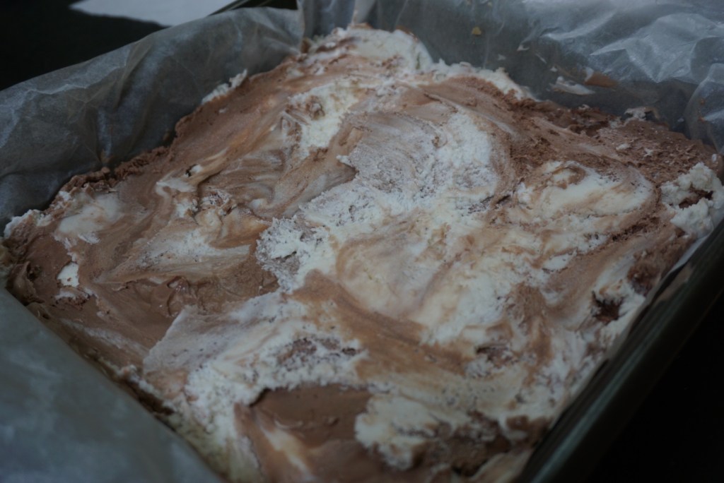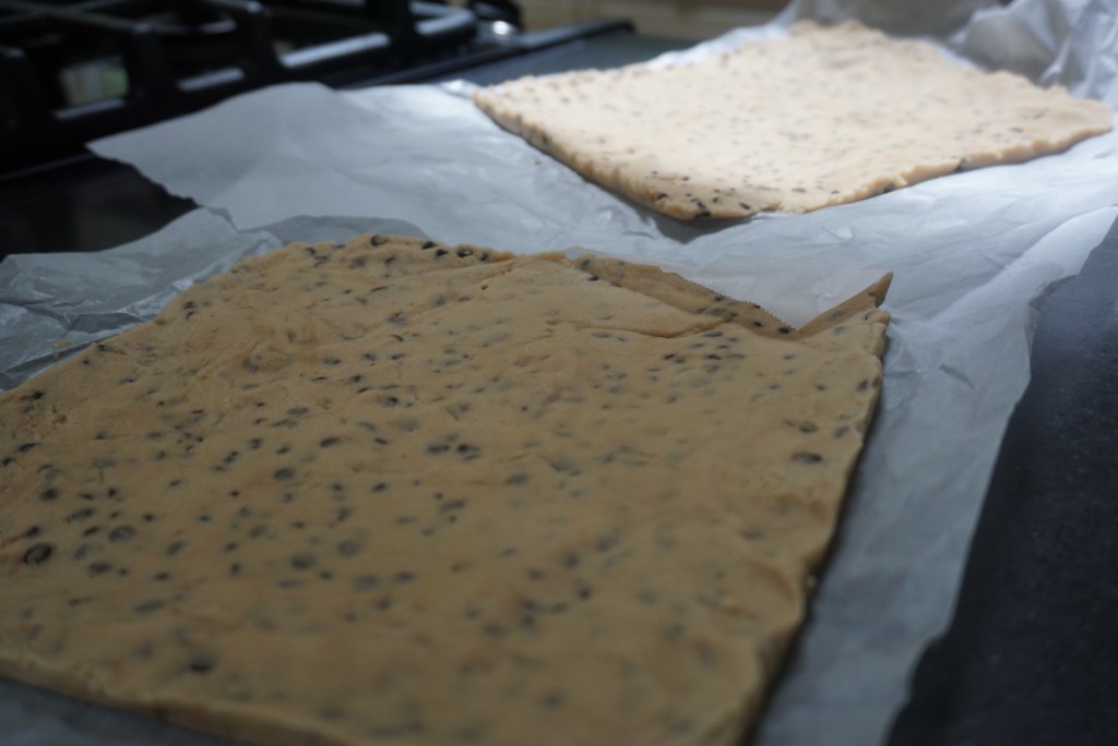 7. Remove the flattened layer from the pan and repeat with the second half of the dough (creating the top and bottom layers of the ice cream sandwiches).