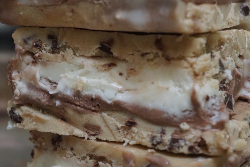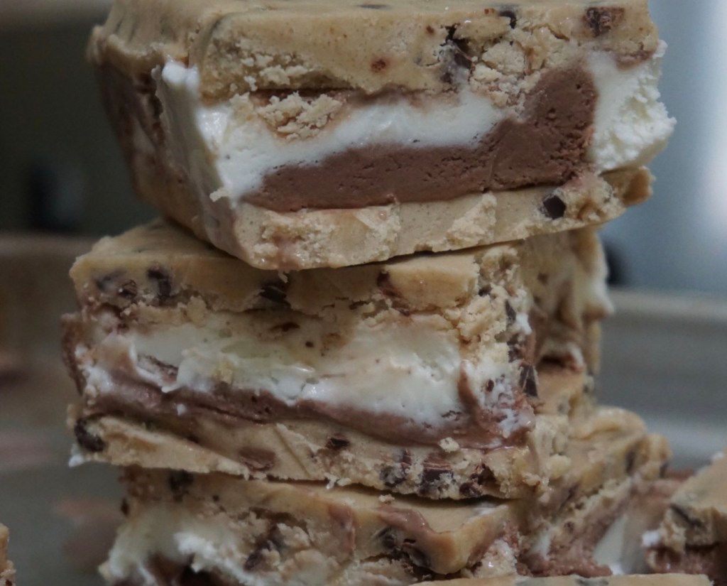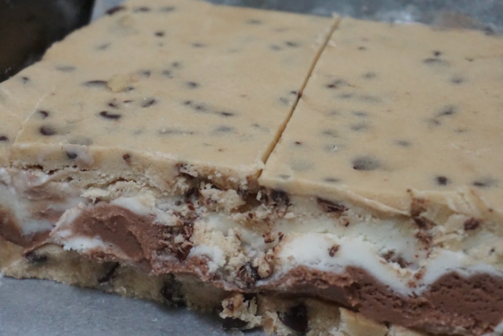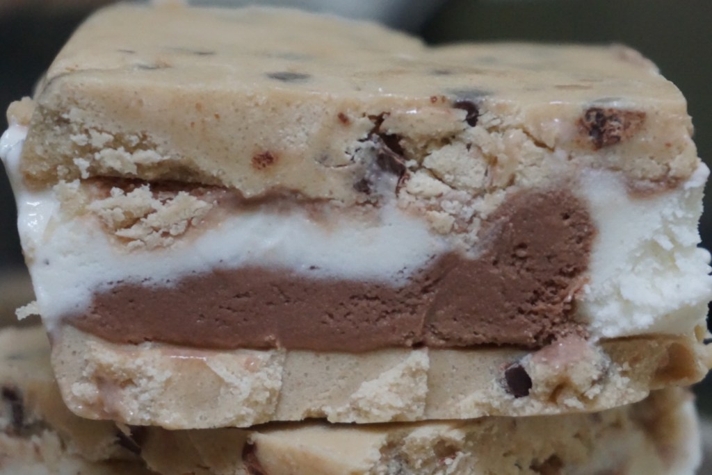ice cream between 2 edible cookie dough slabs…yup, you read that correctly